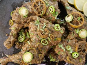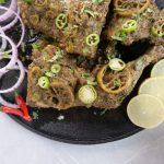 -Make deep cuts on both sides of chicken pieces,add ½ quantity of prepared marinade,coat well & marinate for 1-2 hours & reserve remaining marinade for later use.