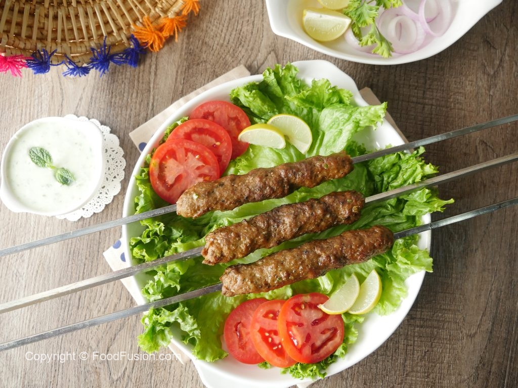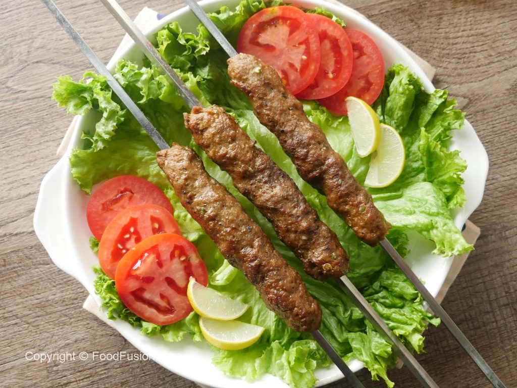 Haathon ko oil sa grease karein aur mixture ko la ker ek jaisay sizes ka metal skewers per kababs tayyar ker lein (makes 10-12).