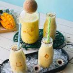 In blender jug,add mango and blend to make puree & set aside.
