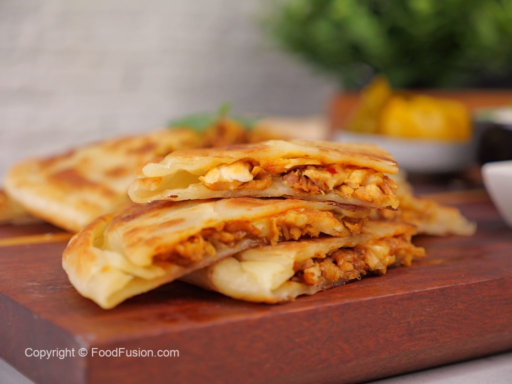 -On one rolled dough, spread mayonnaise, prepared chicken filling, mix cheese, prepared hot mustard sauce (1 tbs) & place another rolled dough over it & seal properly.
