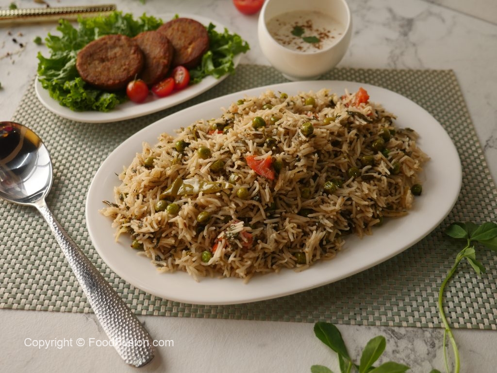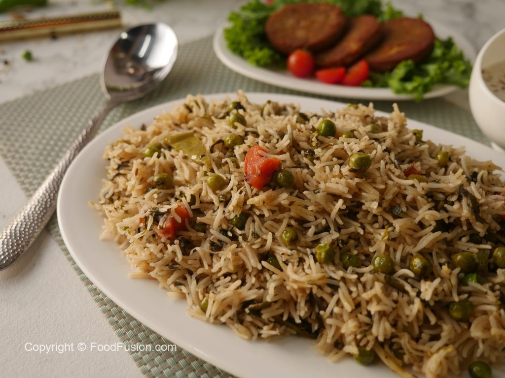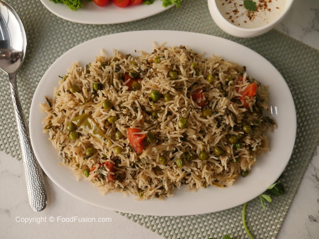 Methi Matar Pulao recipe in Food Fusion Style. A delicious pulao recipe for your everyday cooking. #HappyCookingToYou #FoodFusion