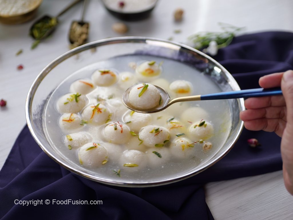 -Halki ancch per sheeray mein mini rasgulla balls dal dein aur darmiyani ancch per 3-4 minutes (without stirring) paka lein aur dhak ker 8-10 minutes ya size double ho janay tak paka lein.