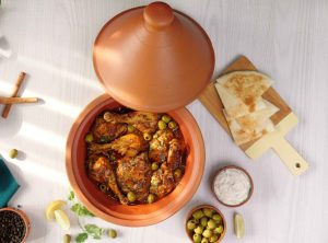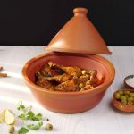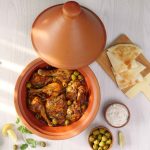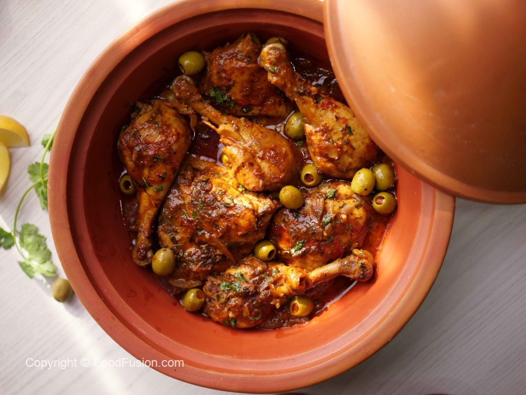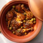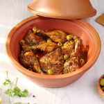 -Add onion,garlic,pickled lemon (chopped),tomato pureed,fresh parsley,dissolved saffron,chicken stock,cover & cook on low flame for 25-30 minutes.