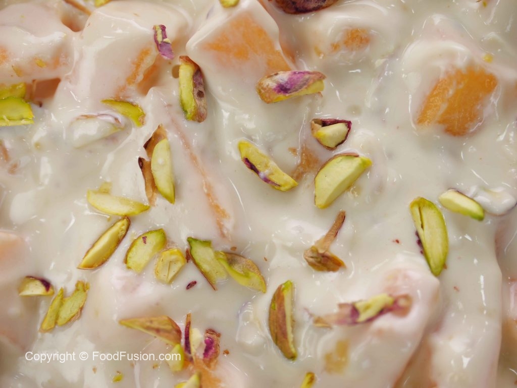 -Add muskmelon cubes,pistachios,almond & mix well.