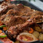 Place extra thick parchment paper & marinated leg,cover & steam cook on low flame until tender (1 hour).