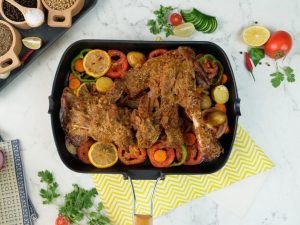 Mutton roast masala,dhania powder,zeera powder,lal mirch powder,chaat masala,lemon juice aur dahid al ker evenly rub ker lein aur dhak ker 4 hours kliya marinte ker lein.