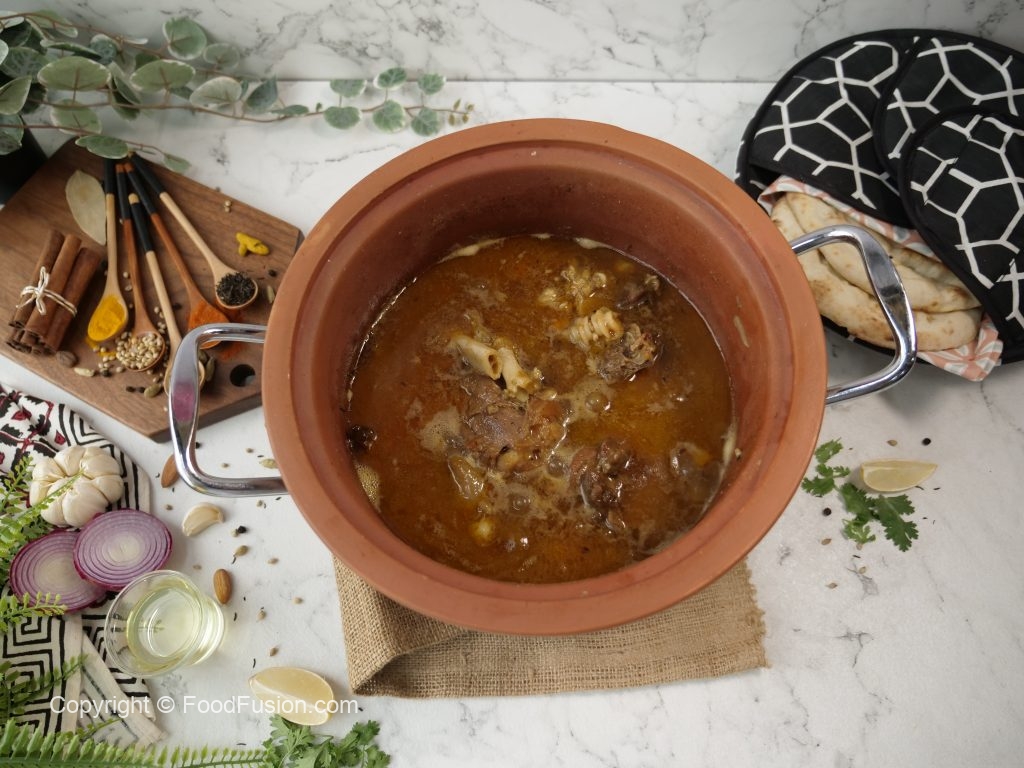 Pot mein mutton paaye aur pani dal ker ubal anay dein,scum ko remove ker lein aur 8-10 minutes kliya boil ker lein phir strain ker ka tap water sa dho lein.