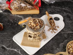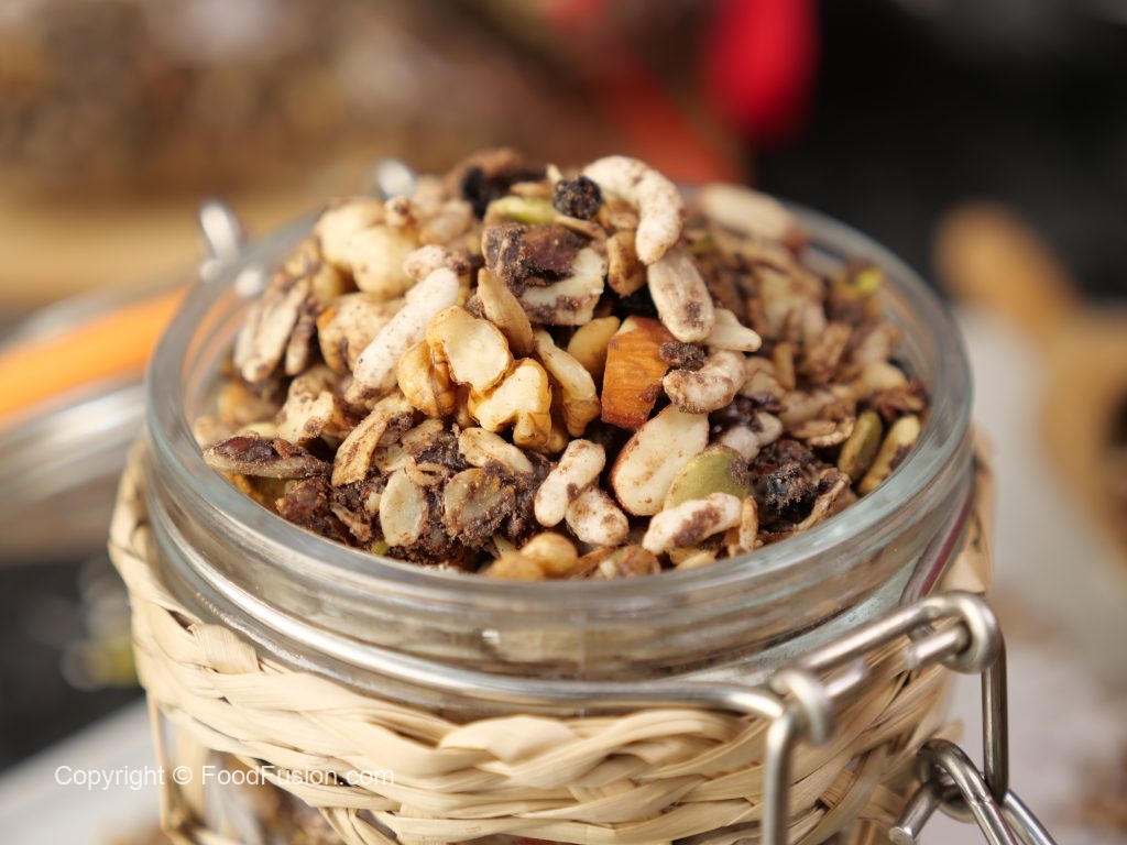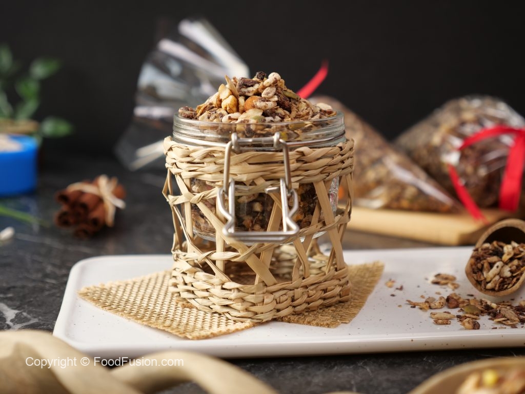 -Let it cool completely & mix well (yields: 1000g of granola).