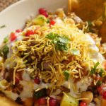 Platter mein palak pakora,hari mong daal,chanay,aloo,pyaz,tamatar,dahi,tayyar hari chutney,tayyar khatti chutney,nimco sev,anaar,lal mirch crushed,chaat masala aur hara dhania dal ker serve karein.