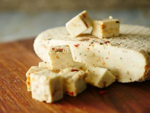 Now line the strainer tray with muslin cloth/cheese cloth and enclose flavored cheese with muslin cloth and put heavy weight on it.