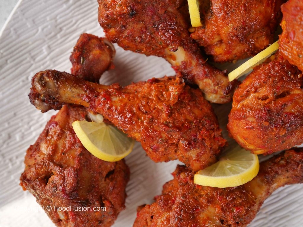 -Remaining marinade ko tamam drumsticks per laga lein phir turn ker ka grill per 20 minutes kliya cook ker lein (use remaining marinade to make peri peri dip sauce).