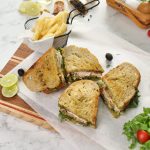 -Bread slice per tayyar pesto sauce dal ker pheela lein,palak,tamatar slice,cheddar & mozzarella cheese,chicken fillet,cheddar & mozzarella cheese aur pesto sauce dal dein aur dosray bread slice sa cocer ker lein aur cheese melt ho janay tak grill ker lein (makes 3).