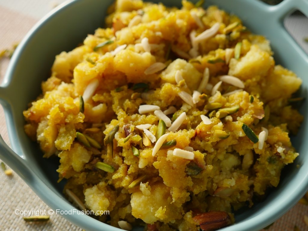 In pot,add grated pumpkin,mix well and cook on medium flame for 20-25 minutes or until it dries up and keep mixing in between.
