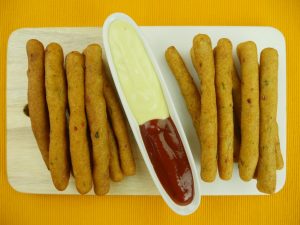 Ghee dal ker pheela lein aur maida chirak ker cutter ki madad sa thin strips mein cut ker lein.
