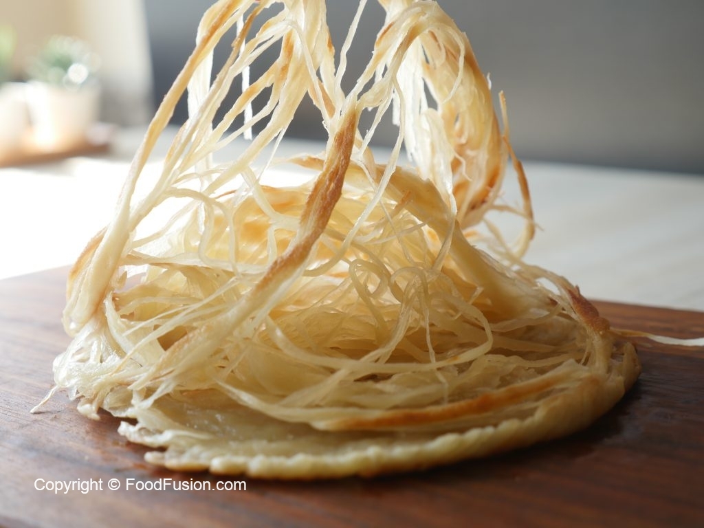 Add & spread ghee,sprinkle dry flour and cut into thin strips with cutter.