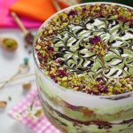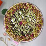 -Aakhir mein pistachios,almonds aur dried rose petals haath se crush karke sprinkle karein aur serve karein.