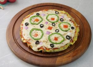 -Add & spread pizza sauce,add cheddar cheese,mozzarella cheese,capsicum,tomato,onion & black olives.