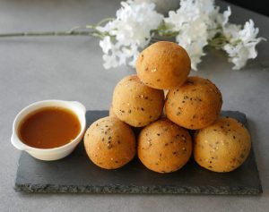 In bowl breadcrumbs,black sesame seeds and mix well.