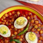 -Add lemon juice,fried eggs,green chillies & fresh coriander,cover & cook on low flame for 4-5 minutes.