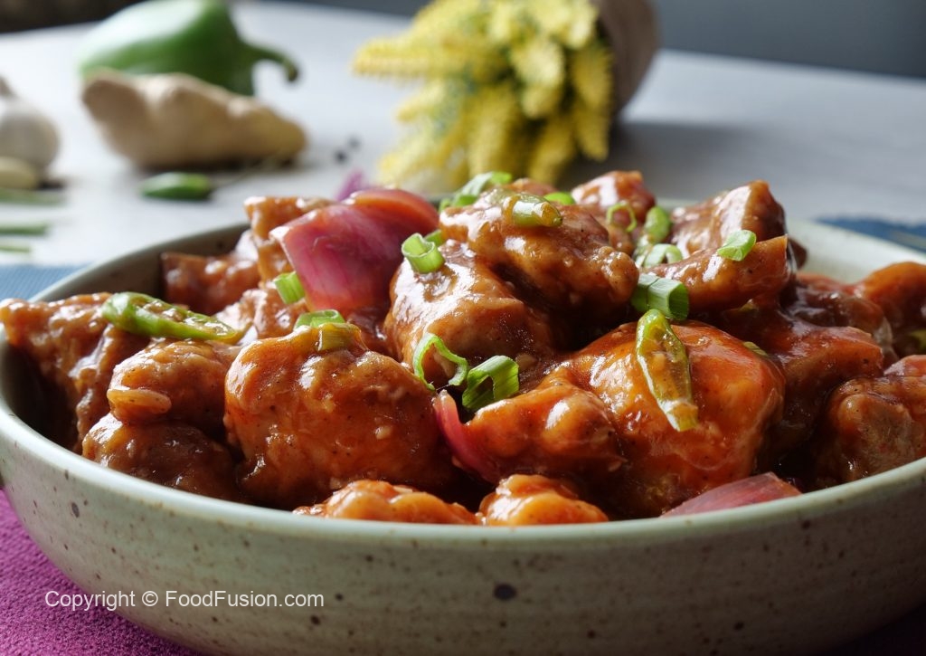 In a bowl,add water,soy sauce,tomato ketchup,hot sauce,black pepper powder,salt,red chilli powder, chicken powder,cornflour,whisk well & set aside.