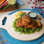 Now dip into beaten eggs and coat in breadcrumbs.