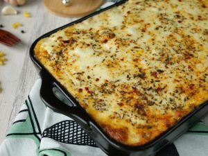-Add another layer of potato & cheese mixture & spread evenly.