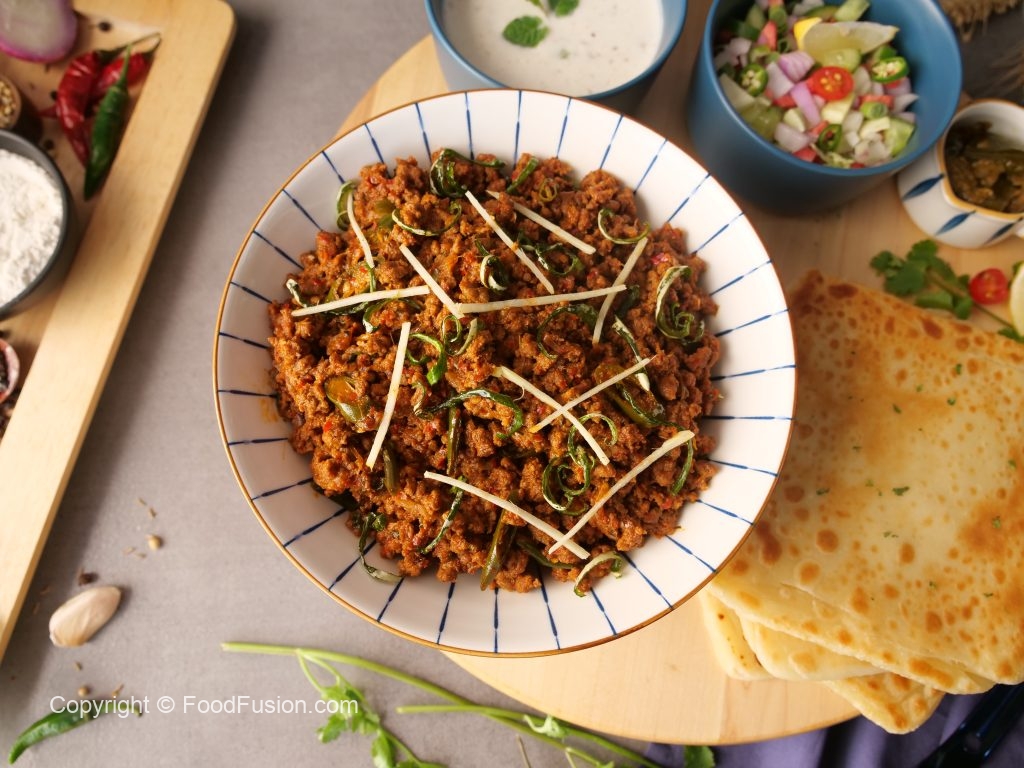Smoky Double Mirch Qeema with Lifafa Paratha