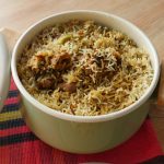 Add reserved ground spices,fried onion,boiled rice,fried onion and remaining reserved ground spices, cover and steam cook for 8-10 minutes.