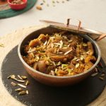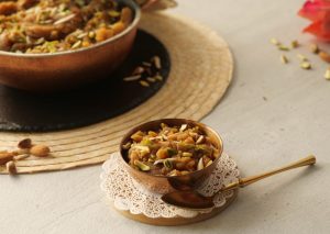 Add pistachios, raisins, almonds, mix well & cook for 1-2 minutes then set aside.