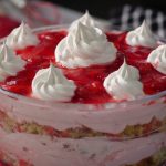 Garnish with reserved whipped cream & prepared strawberry jello.