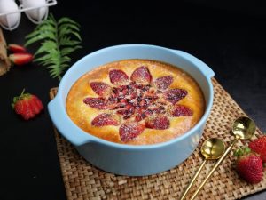 -Decorate with strawberries & air fry at 160C for 25 minutes.