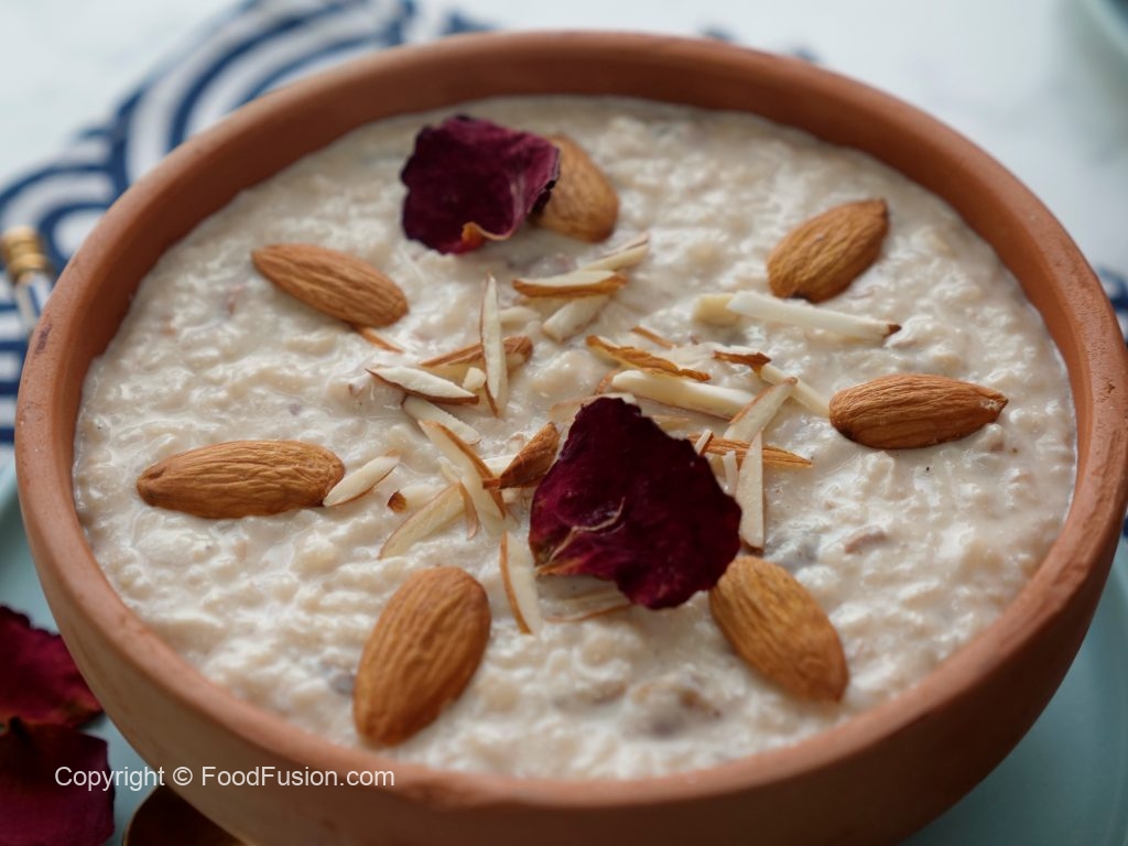 Garnish with almonds,dried rose petals & serve chilled.