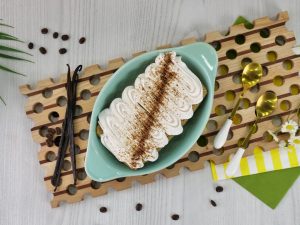 -In warm milk,add stevia,coffee,coconut milk powder,cream,whisk well & set aside.