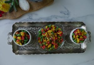Add yellow color,green color,red color and whisk well & set aside.