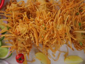 -On flat surface, place roll sheets, fold & cut into thin (threads like) strips.