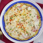 -Add cheddar cheese,mozzarella cheese,red chilli crushed,spring onion leaves,cover & cook on low flame until cheese melts (2-3 minutes).