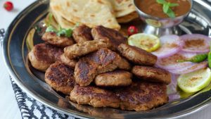 -In a large tray,add beef mince,chickpea flour,ground paste,raw papaya paste,pink salt,red chilli powder, garam masala powder,cardamom powder,mace powder,mix & knead well with the help of hands.
