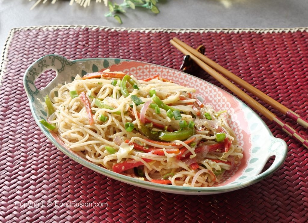 Boiled spaghetti,safed mirch powder,kali mirch crushed,nama,chicen powder,soy sauce,hot sauce aur sirka dal ker 1-2 minutes kliya ache tarhan mix ker lein.