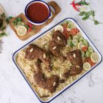 -Garnish with almonds,fresh coriander & serve chicken mandi with mandi rice & sauce!
