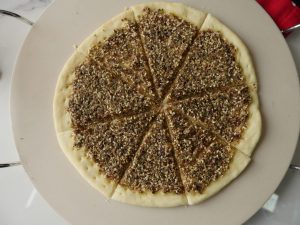 Add & spread prepared sesame seeds mixture (makes 4).